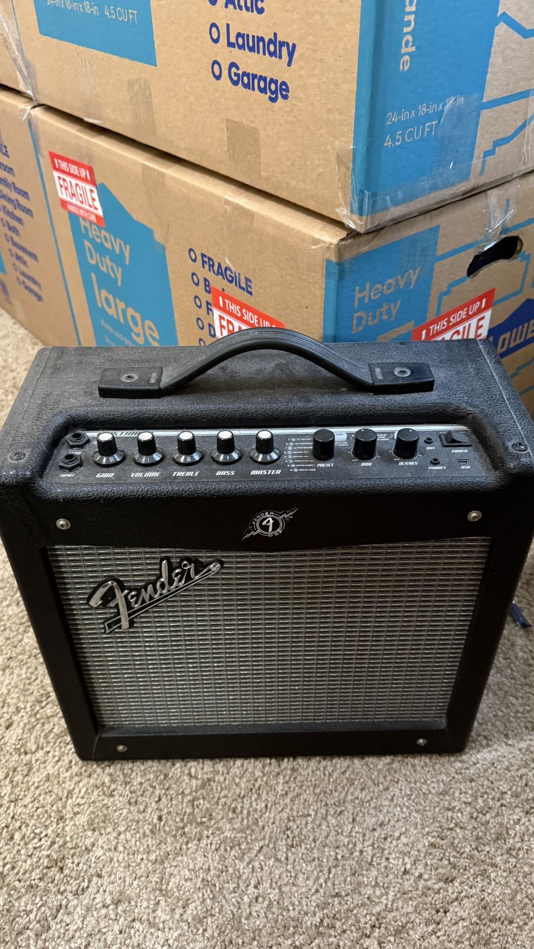 Selling my Fender Mustang I amp. ✨ Features: • 20W combo amplifier • Multiple amp models & built-in effects • Preset options (clean, blues, metal, etc.) • Reverb, modulation & delay effects • AUX input • Headphone jack for silent practice • USB connectivity Compact, lightweight, and easy to carry. Works perfectly and sounds great. Comes in a box. Must go ASAP. Pick up in torrance