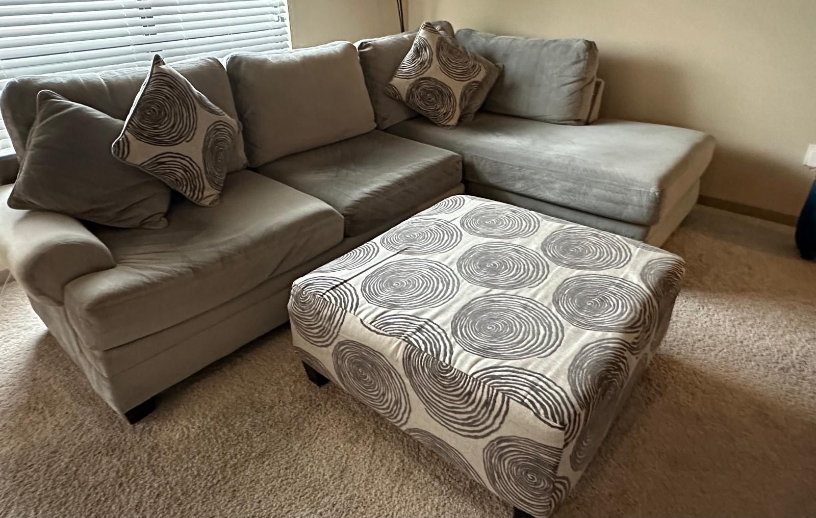 MOVING SALE – Gray Chaise Sectional + Ottoman | Must Go ASAP