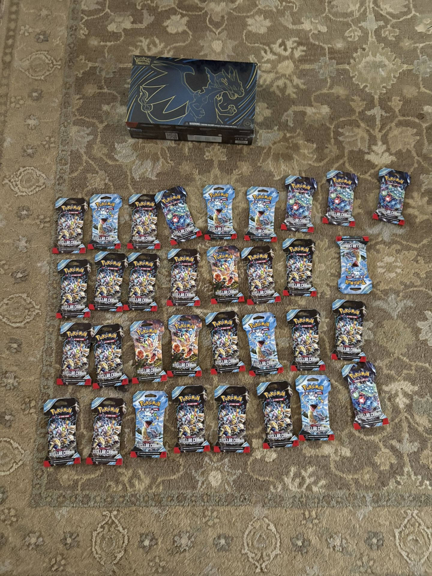 33x Stellar Crown Sleeved Booster packs: take 10+ for 6 each take less than 10 for 7.50 each 1x charizard X EX UPC- $160 or $150 if u take everything Take the entire lot for $350