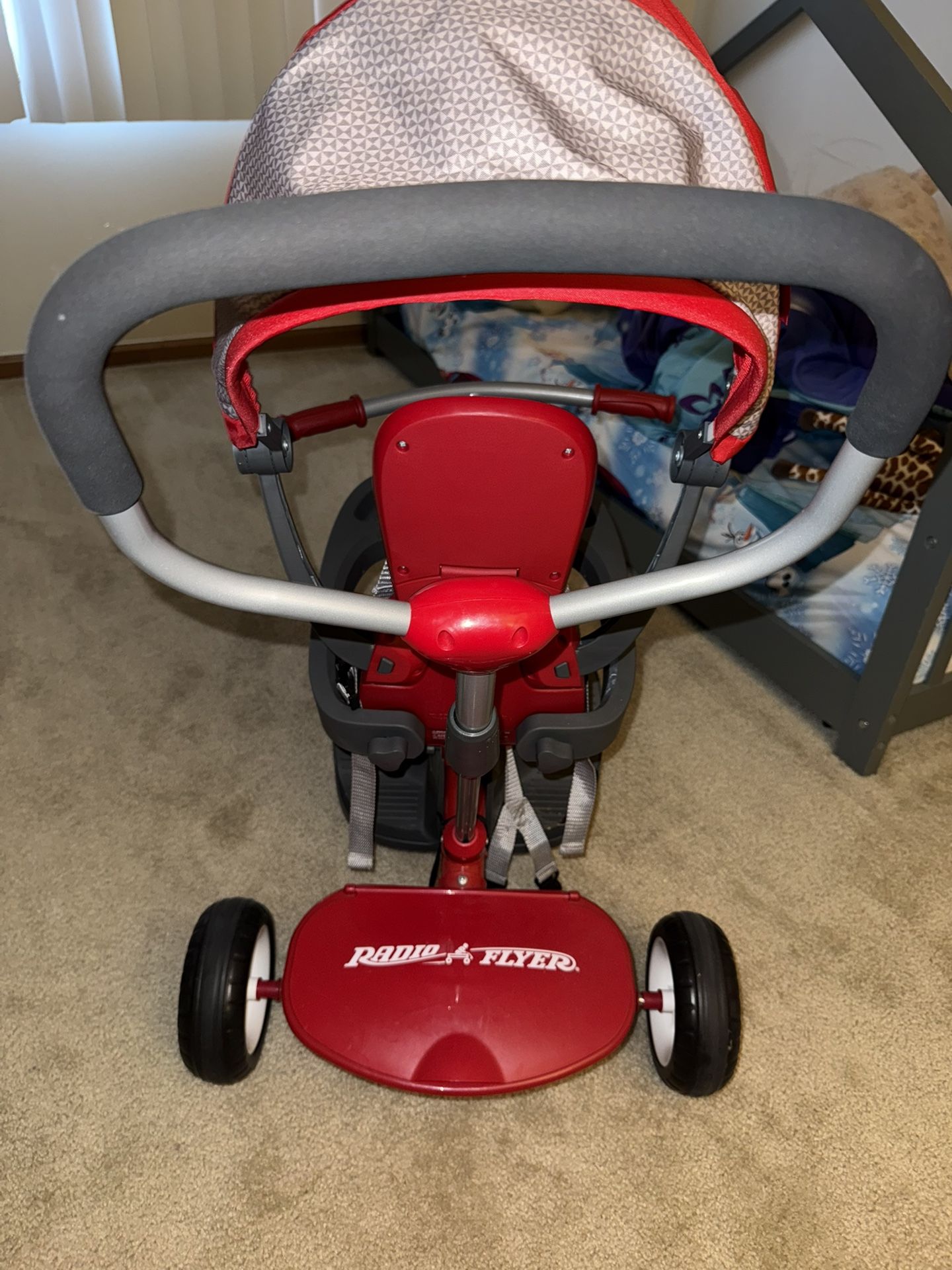 4 in 1 stroll n tike Can be pushed or pedal as child gets older Foot rest while being pushed 3 point harness