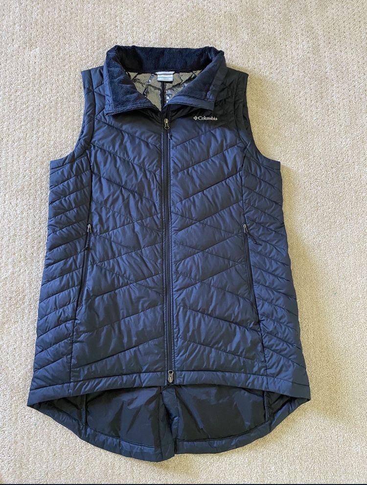 Womens Columbia Long Fit Black Puffer Vest Jacket Snow Cold Weather