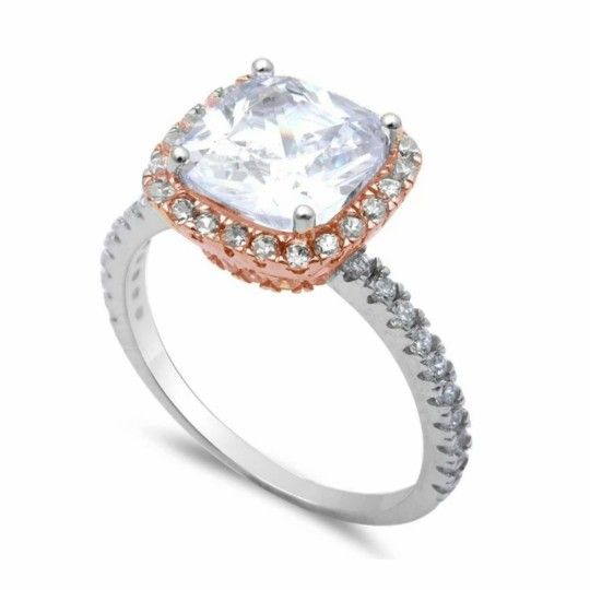 3ct Two Tone Cushion Cut Fine Cz Ring. Size 8