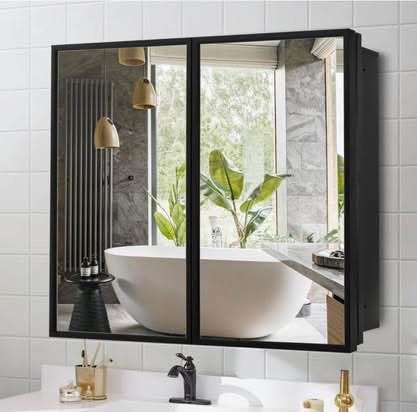 New 30x26 Farmhouse Black Metal Framed Recessed or Surface Bathroom Medicine Cabinet with Mirror