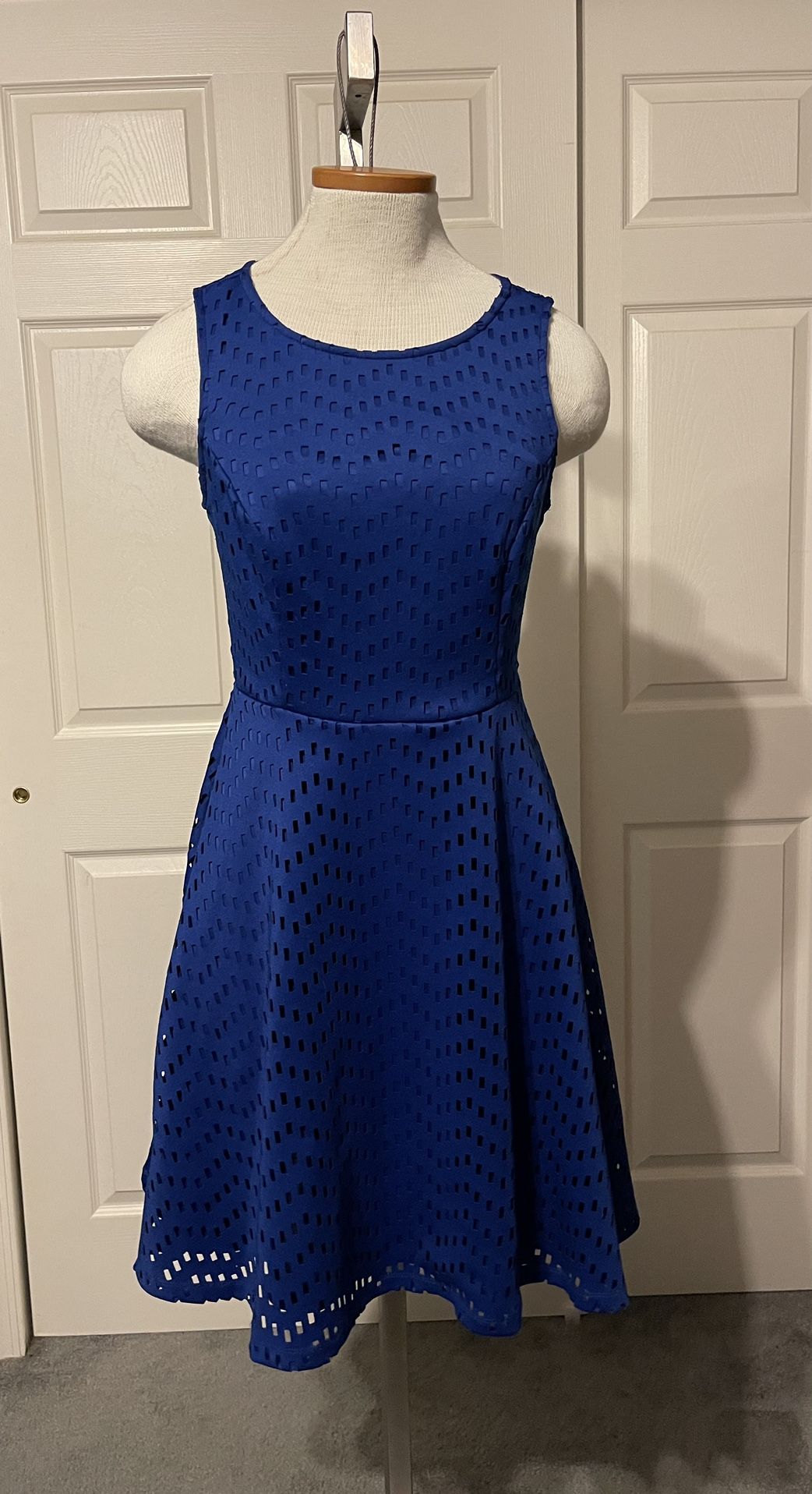 APT. 9 Women's Royal Blue Eyelet Textured Fit & Flare Sleeveless Dress Size 6 EUC - Worn Once