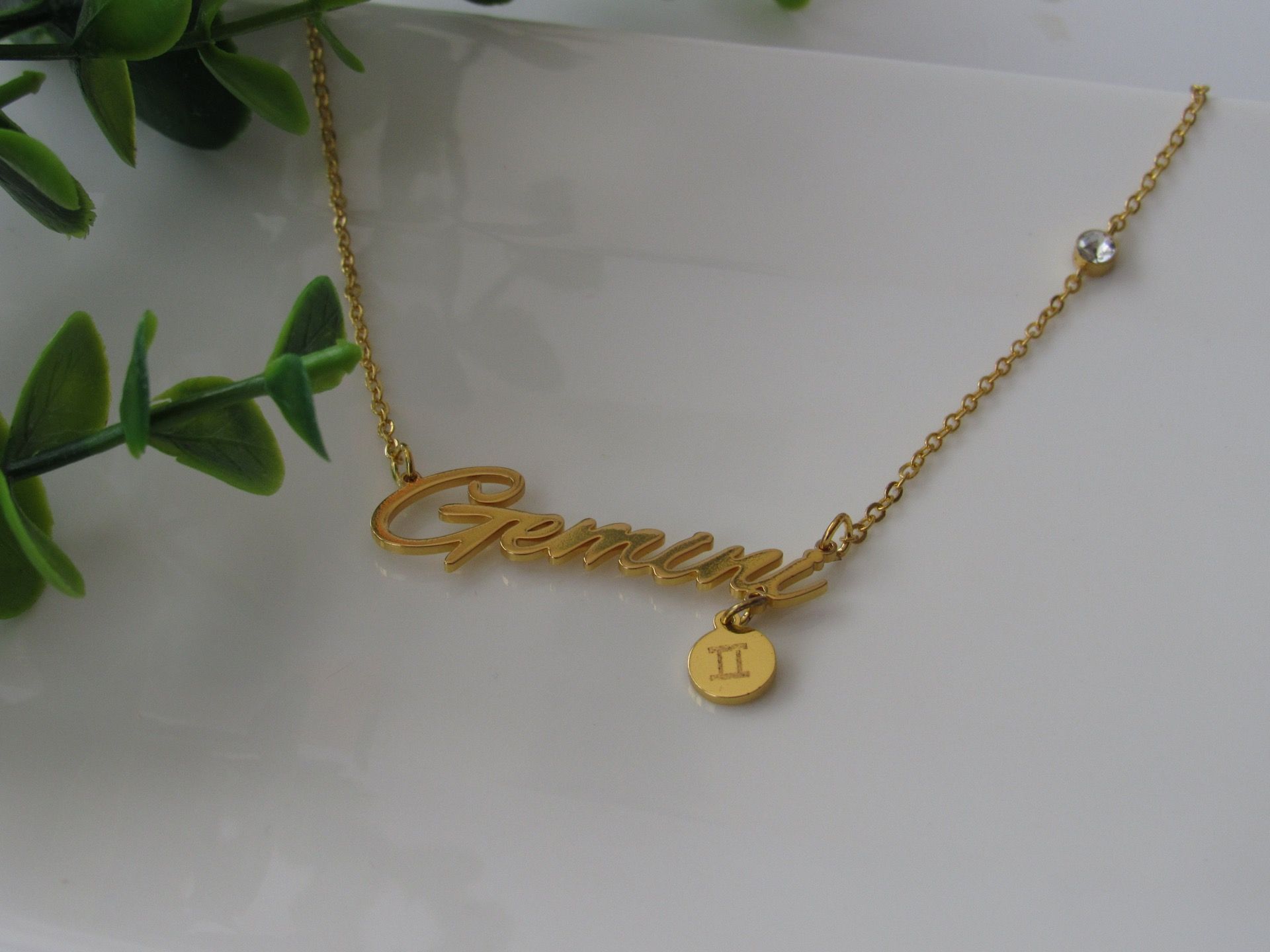12 Constellation Zodiac Old English Letter Sign Pendant Necklace Astrology, Gemini