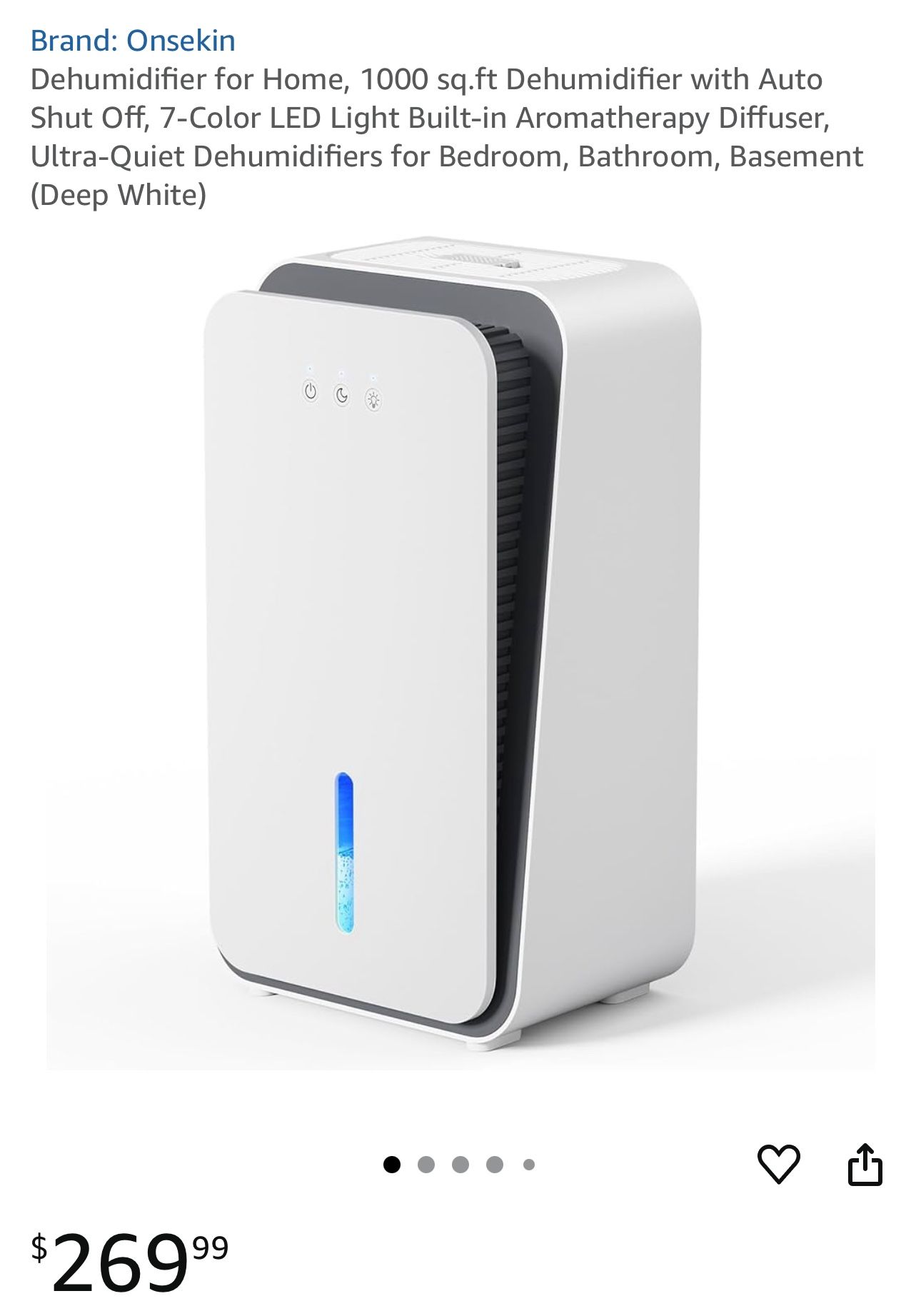 Dehumidifier for Home, 1000 sq.ft Dehumidifier with Auto Shut Off, 7-Color LED Light Built-in Aromatherapy Diffuser, Ultra-Quiet Dehumidifiers for Bed