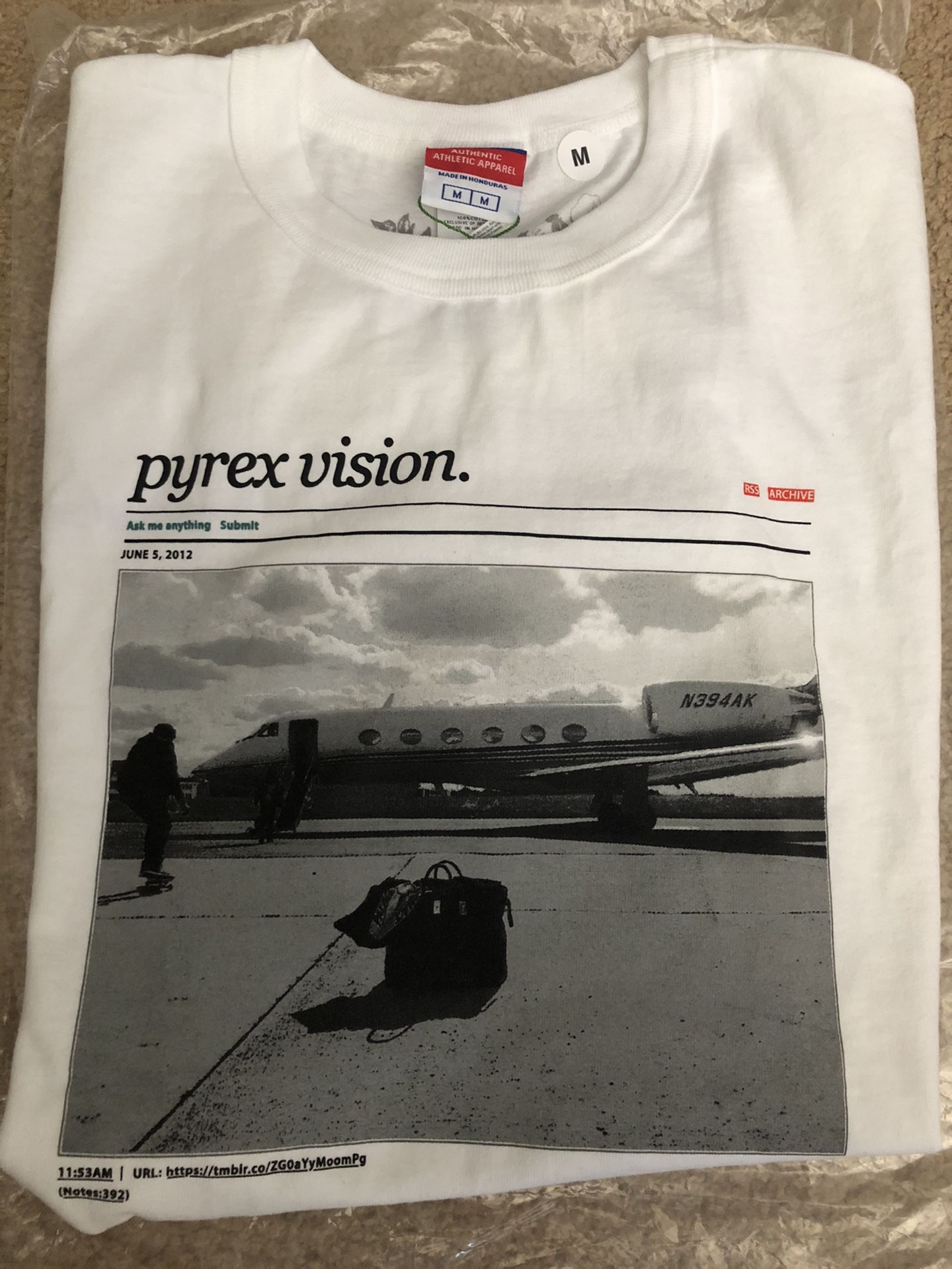 Size Medium Champion shirt verified authentic Before Virgil called his clothing company Off White it was called Pyrex Vision Tags: Off-white champion tee Nike Jordan adidas