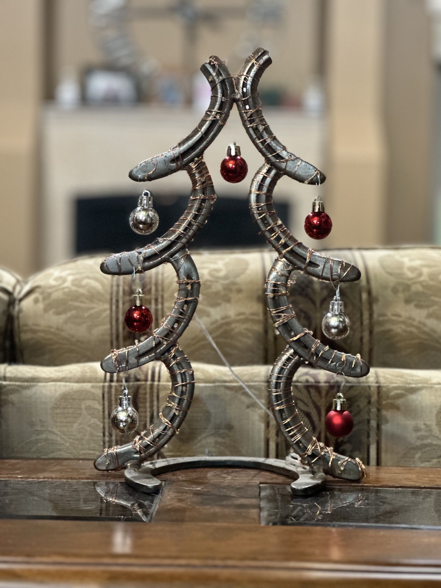 Horseshoe Christmas trees for sale. These trees are made from used horseshoes, and come with a lifetime guarantee. Made to order, and can be painted upon request. Thank you