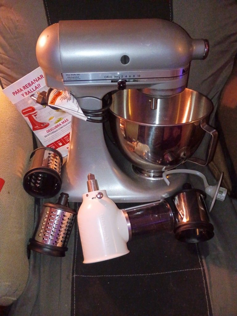 This mixer was used 3 times but I don't have the time to use it. It comes with the dough hook and prep/slicing attachment.