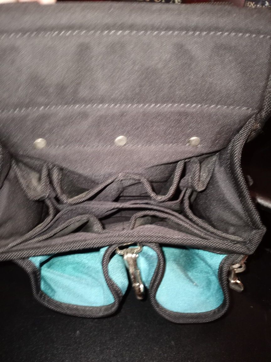 Cordura electricians tool pouch. about 20 different slots for various hand tools and Hammer... A Loop for electrical tape... Great for the home handy man or woman to keep all your tools available for emergency repairs... use with a belt... Or handle for carrying or hanging up tool pouch while working... a must-have for the professional or home handyman... CHECK OUT ALL MY FUN ITEMS FOR SALE IN "SEE MORE FROM THIS SELLER"