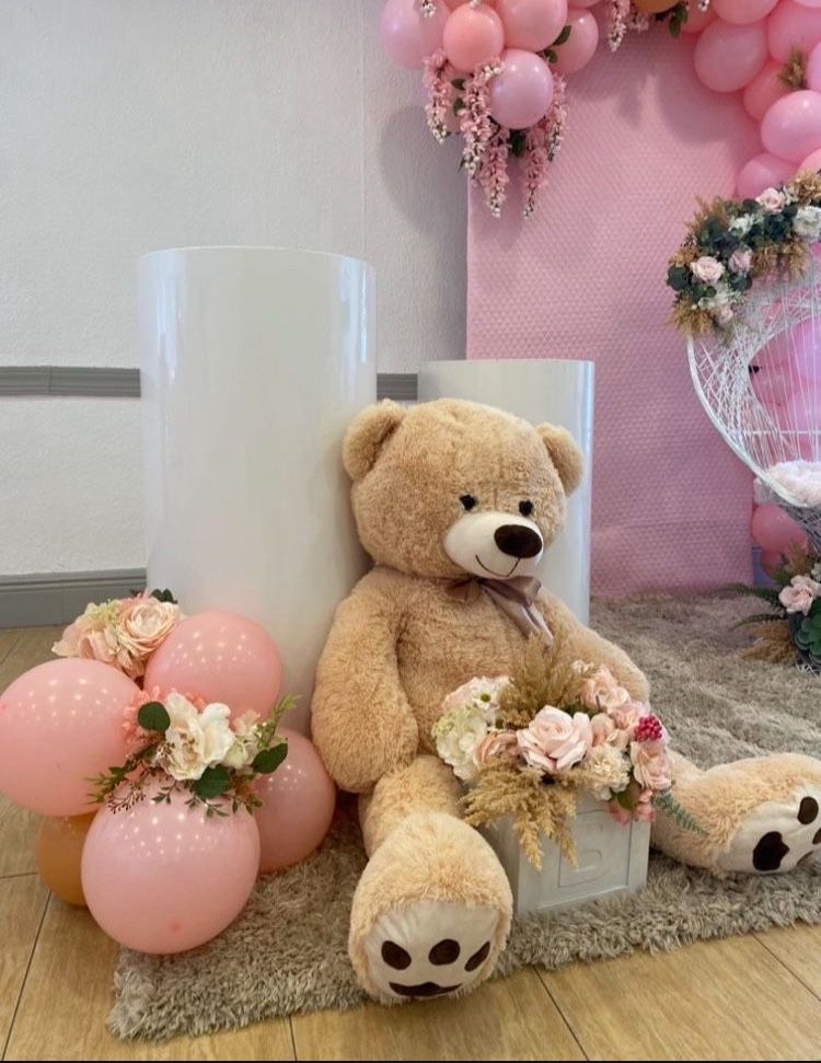 Bear Backdrop Balloon Garland Chiavari Chairs Round Tables
