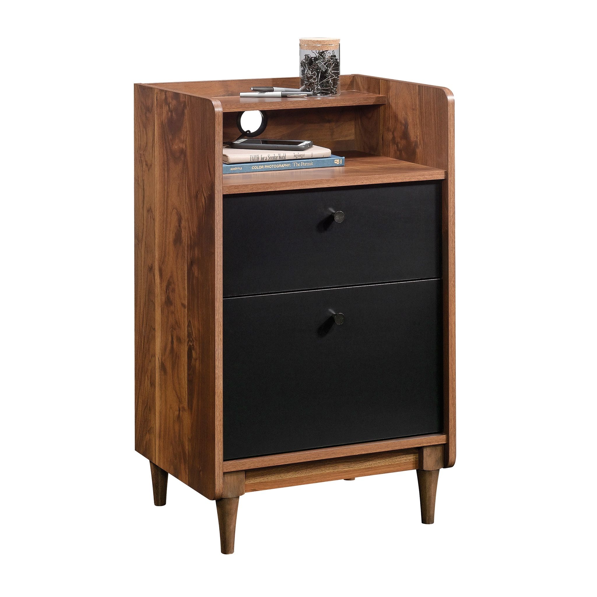 Get your mess in check with this Better Homes & Gardens Montclair 2-drawer stand with a file cabinet. Find room to store books, office supplies, important papers, and more. It features a spacious storage shelf and two easy glide storage drawers. The lower drawer accommodates letter-size hanging files for optimized organization. The Montclair 2 drawer stand with the file also has a grommet hole for cord management, a huge help in keeping your space decluttered! Finished in vintage walnut on all sides with black accents for versatile placement and is detailed with solid wood feet, this is the perfect solution for your clutter and chaos and will be a great addition to any room in your home. Better Homes & Gardens Montclair 2-Drawer File Cabinet, Vintage Walnut Finish: The lower drawer holds letter-size hanging files Assembled dimensions: 18.7" L x 15.6" W x 31.3" H Weight capacities: Top shelf: 10 lbs; lower open shelf: 20 lbs; top drawer: 15 lbs; lower drawer: 30 lbs. Engineered wood construction Assembly required Model # 422283