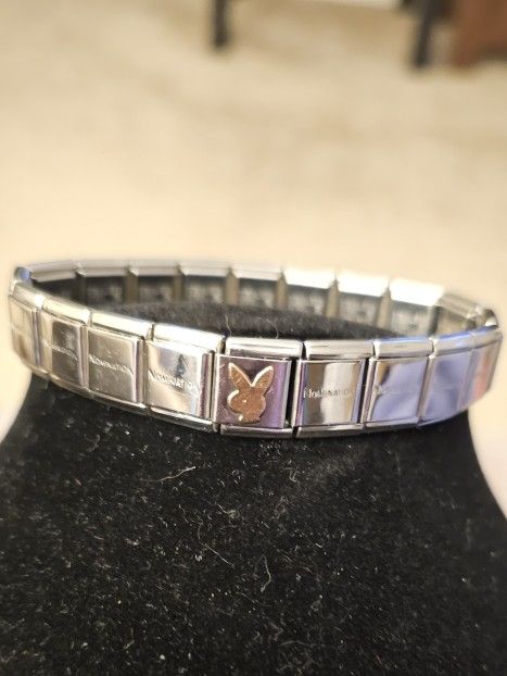 For sale is an authentic Italian Nomination, "BIG" 13mm, composable link, stainless steel bracelet. There is one charm with an 18k gold iconic Playboy Bunny logo soldered on. (Also Nomination).This starter bracelet is ready for more charms, or can be worn just like this. 20 links total. Picture #5 is to show the size compared to the Classic size Nomination bracelet. (not for sale) Ladies, Christmas is coming and this starter bracelet is perfect for the classy man in your life! Comes in a nice gift box!