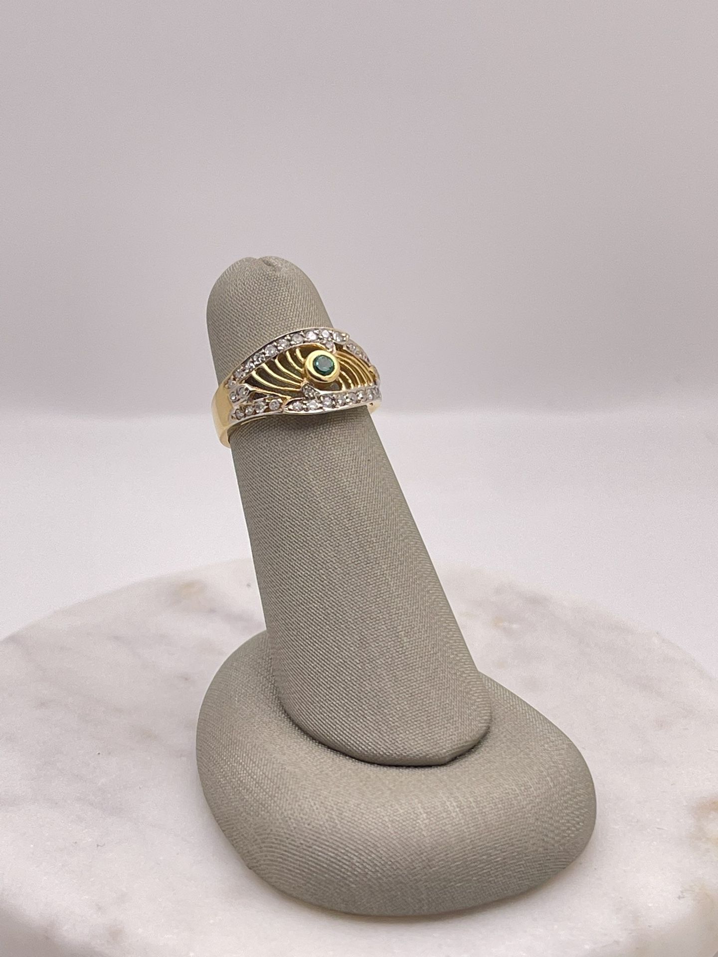 18k gold ring with emerald and cz Size: 6 Weight: 4.9 g