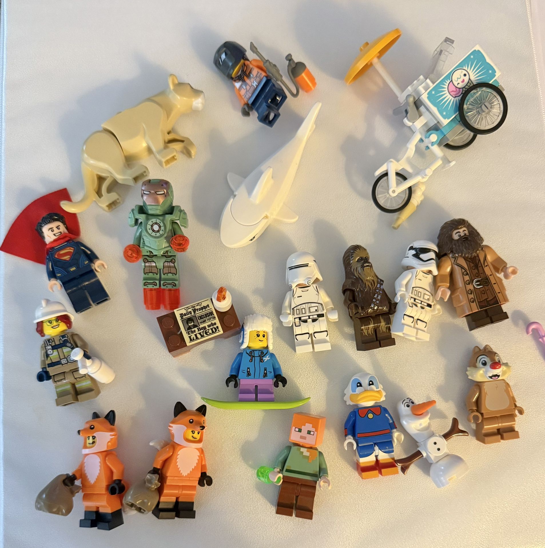 Lot Of Lego Figures-Some Rare-Ironman Scuba, Star Wars, Potter, Disney, Ice Cream Bike Cart