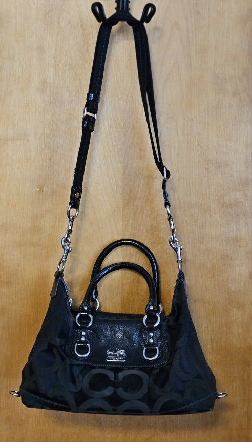 COACH Ashley black shoulder bag Satchel Leather Purse Authentic Very Nice OOP Vintage