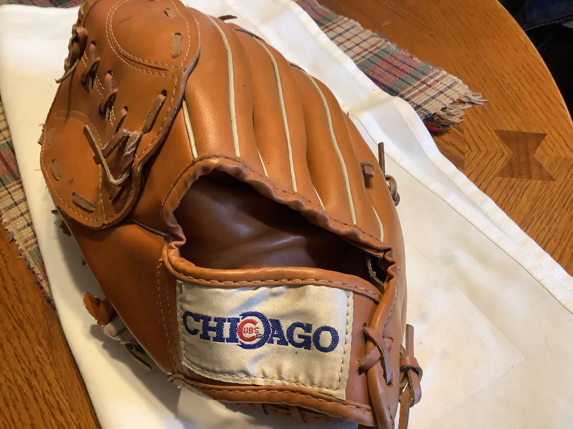 Chicago Cubs Vintage SGA baseball glove sponsored by Milk Duds, display piece but can be used as a baseball glove. Catch right throw left. Only had on display with Cubs’ items Plainfield, Illinois