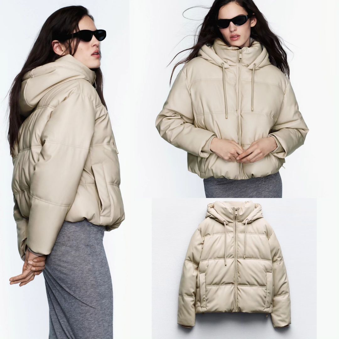 Zara EXQUISITE Man-Made Leather PUFFER JACKET XS