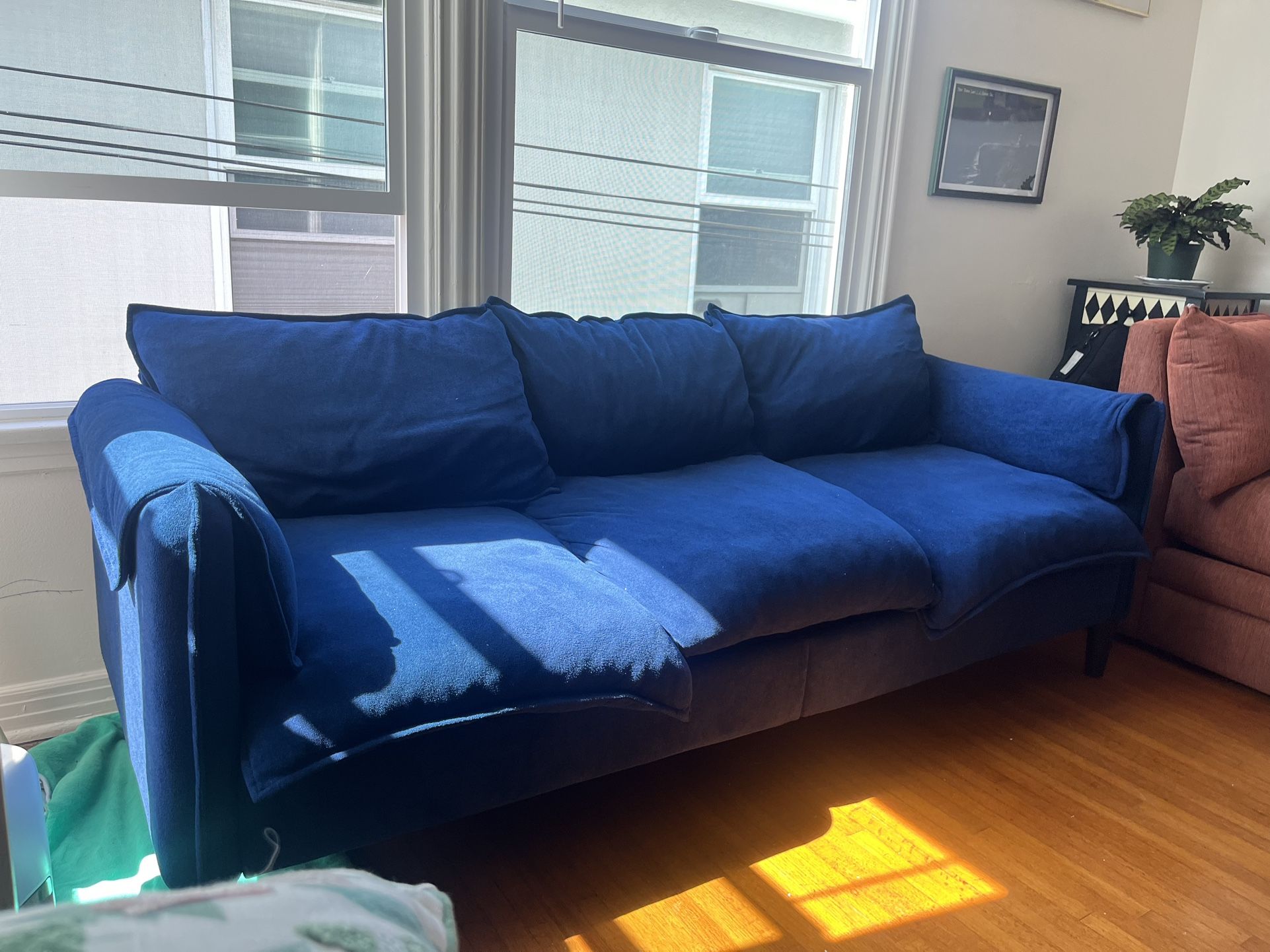 This couch is lightly used, but in excellent condition - like new. Comes with ottoman. Pickup only, and must be carried down a flight of stairs.
