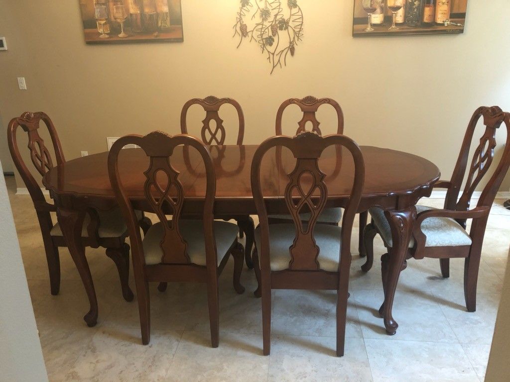 EUC All pieces are a beautiful solid dark cherry wood by Linden Furniture The set includes: -Dining room table with removable leaf & 6 chairs -Sideboard/buffet table, center drawers are velvet lined -Large China Cabinet/Hutch. The back is mirrored and has glass shelves. Drawers are velvet lined as well. The only imperfections are shown in the last 3 photos. Pick Up in Alafaya (SE Orlando) Delivery options available Please don't hesitate to ask questions π