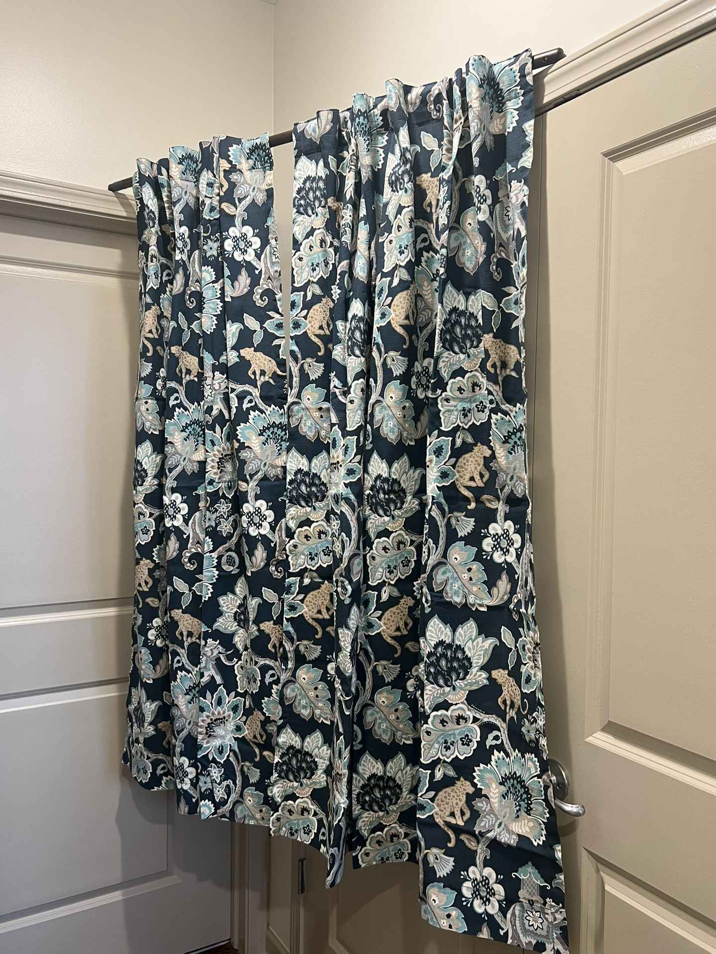 A bundle of 4 sets of curtains (2) panels each set. 2 sets are short and 2 sets are long. All sets are beautiful and work well within various rooms of the home. Set measurements are below. These curtains come from a smoke and animal free home. Golden Brown Velvet Blackout Curtains (short): 53in wide x 63.5in long Multicolored/Patterned Curtains (short): 48in wide x 59.5in long Blue Floral Curtains (long): 49in wide x 79.5in long Blue Patterned Curtains (long): 45in wide x 81.5in long
