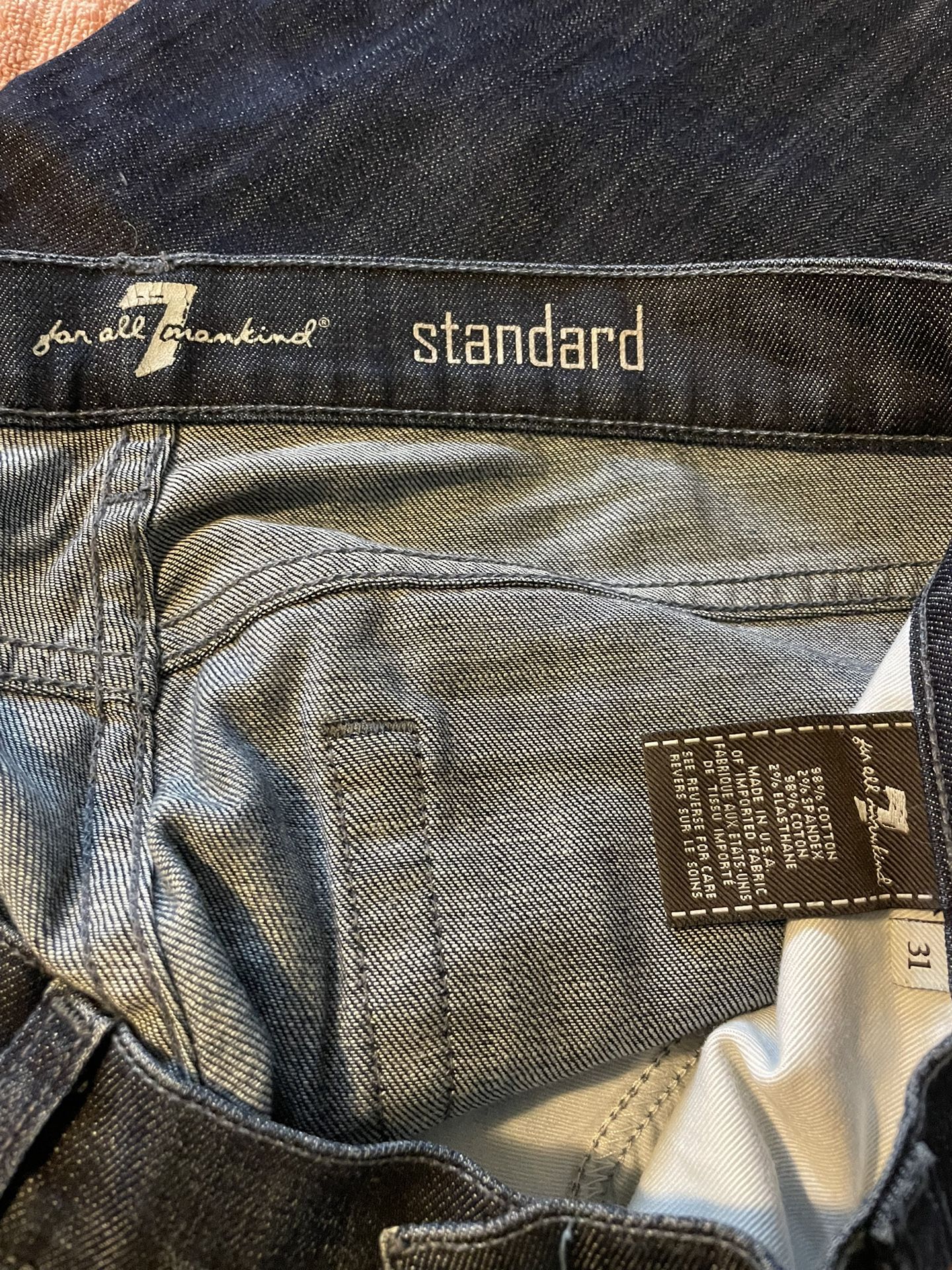 Mens jeans. Small tear by the butt area. As can be seen in the photos. Brand 7 for all mankind size 31