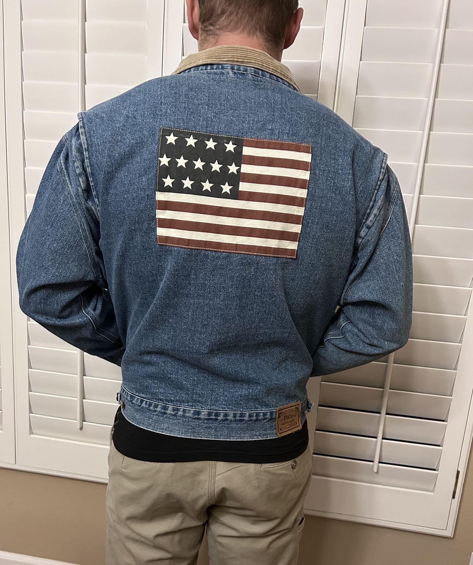 Vintage Polo Ralph Lauren Corduroy Collar American Flag Denim Jacket XXL