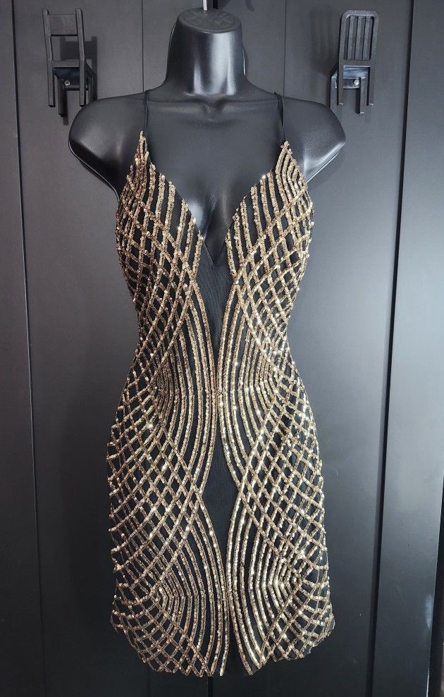 Gold sequin black dress
