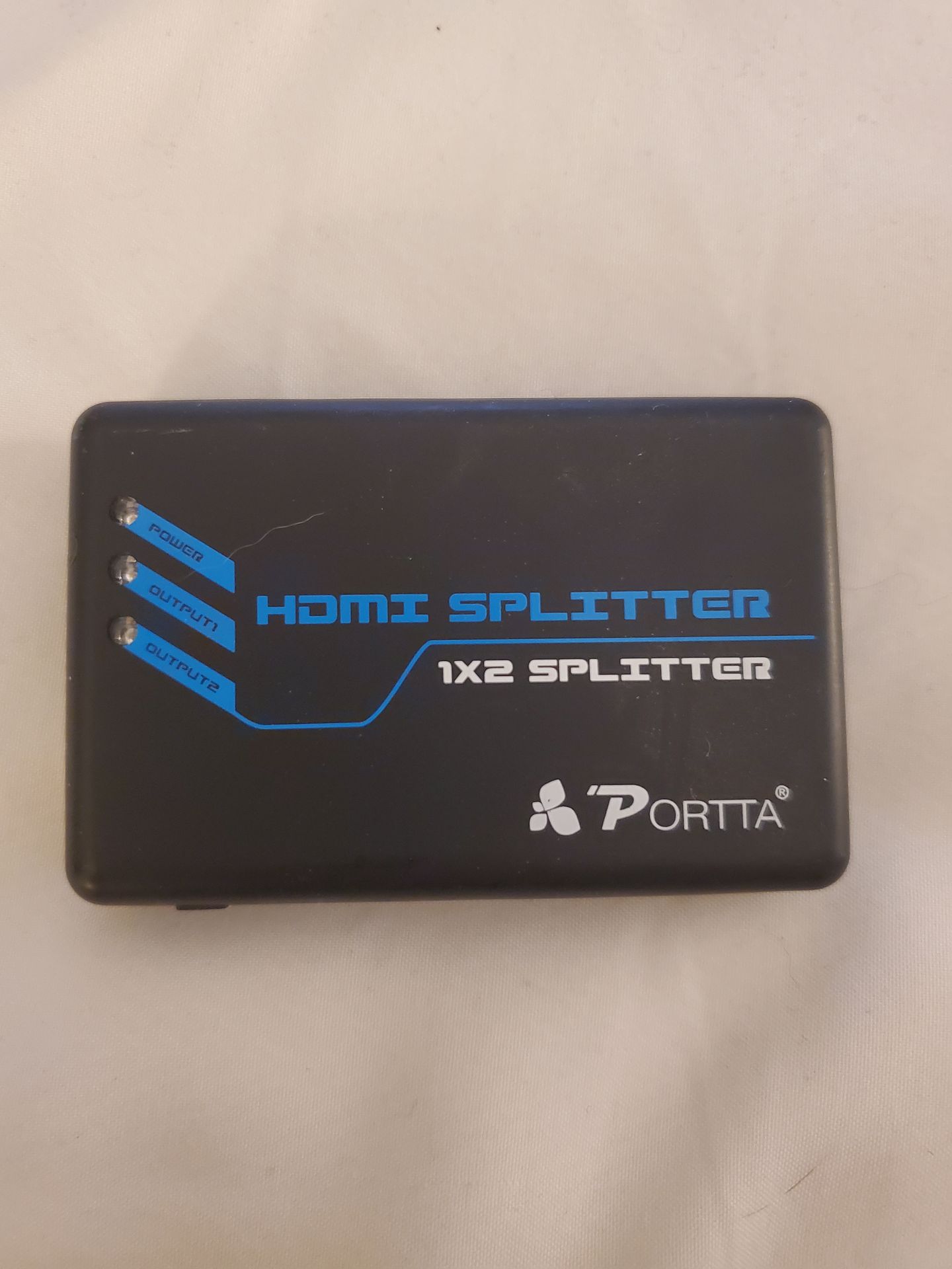 The Portta HDMI Splitter (1x2) is a reliable and versatile device that allows you to distribute a single HDMI source to two displays. With a sleek black design and powered features, this HDMI splitter is compatible with universal brands and models. It offers a 1:2 connection split/duplication, making it easy to expand your viewing options. The Portta HDMI Splitter is a convenient solution for enhancing your TV, video, or audio setup without compromising on quality. Portta HDMI Splitter (1x2) used to distribute a single HDMI source to two displays simultaneously. Functionality: Splits one HDMI input signal into two identical output signals. Compatibility: Supports high-definition resolutions, typically up to 1080p or 4K depending on the specific model, and 3D formats. Indicators: Features LED lights for power status and active output connections. Usage: Suitable for duplicating the same content onto two different screens, such as TVs or monitors.