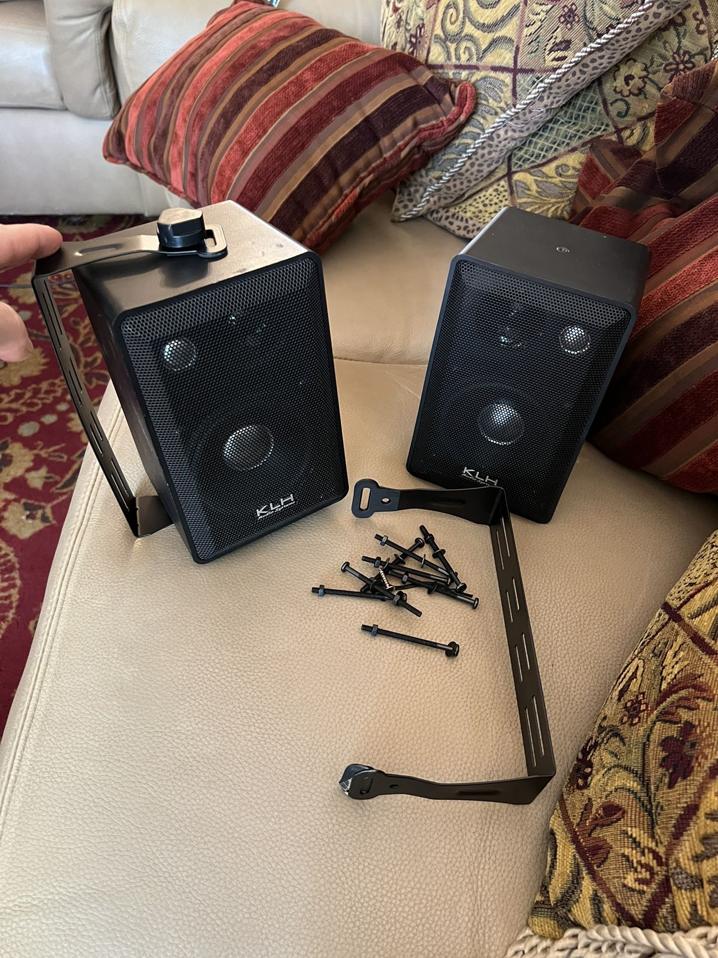 Two Indoor/Outdoor KLH Speakers 40W with Mounts