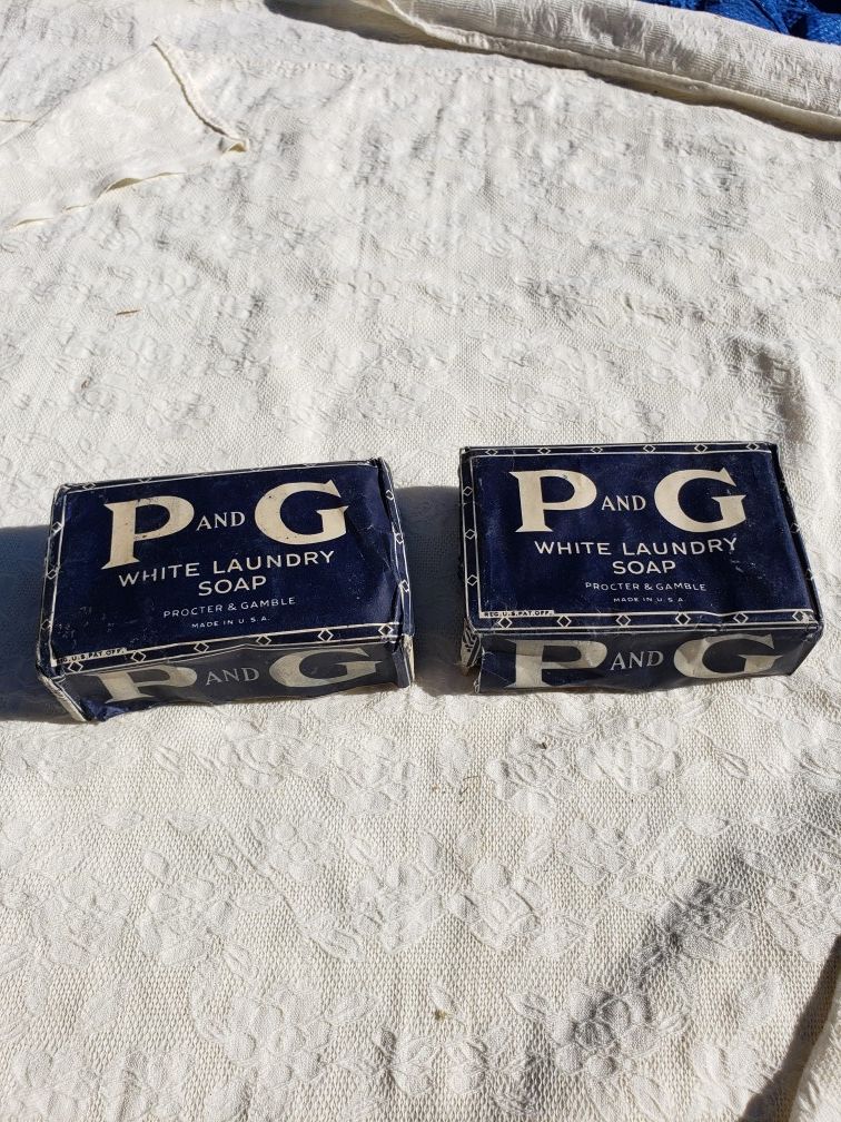 2 bars of WWII Proctor & gamble laundry soap. Each bar about 4" x 2.5" x 1". Price is for both bars. Packaging is in pretty good condition.