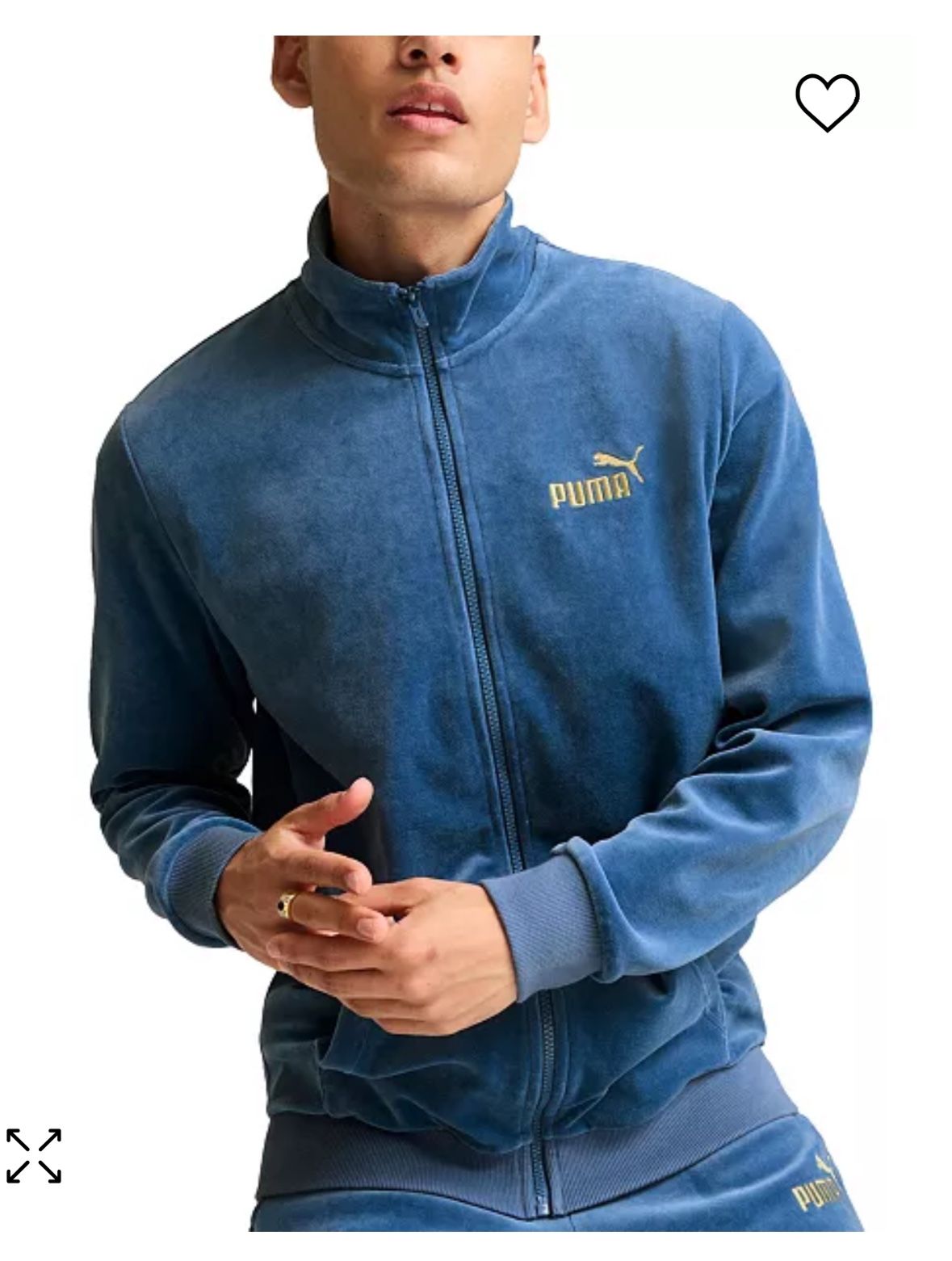 Puma Men's Minimal Gold-Tone Logo Velour Track Jacket
