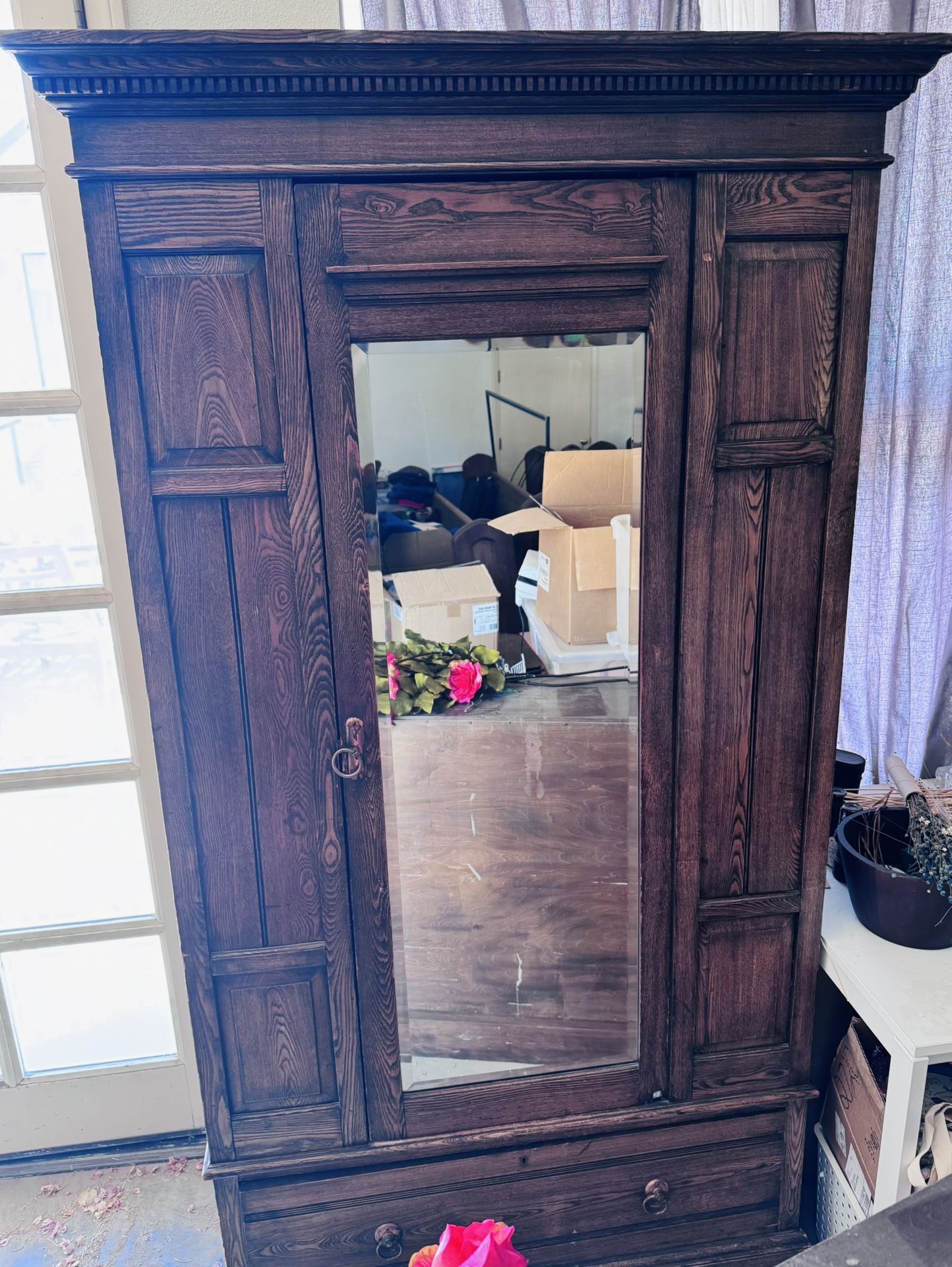 Real Wood Armoire w/ key and 1 large drawer on the bottom