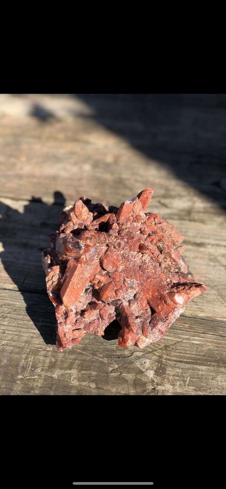 Beautiful statement piece from Morocco. Got it a few years ago and is probably my favorite piece and weighs around 12-15 pounds so its a chunker! Has several points and caves and deep beautiful hematite all over. Letting it go for wholesale pricing so first come first serve on this one!