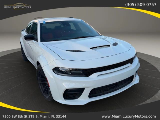 Experience Distinctive Performance with the 2023 Dodge Charger Scat Pack Widebody SedanThe 2023 Dodge Charger Scat Pack Widebody Sedan is a remarkable blend of style and power. Its pristine white exterior and elegant red interior create a striking visual impression, while the advanced automatic transmission ensures a smooth and confident driving experience. Designed for those who value both sophistication and performance, this sedan stands as a testament to automotive excellence. Discover the opportunity to own a vehicle that embodies refinement and capability. The Charger Scat Pack Widebody Sedan awaits those who appreciate precision engineering and distinctive design.