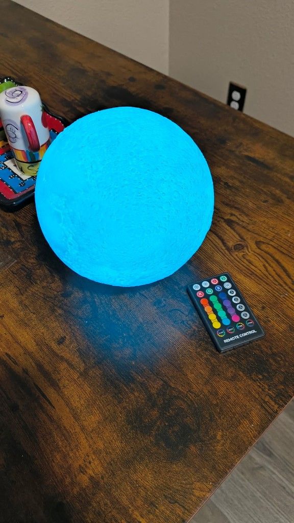 Light that is in the shape of the moon, changes colors and comes with a remote