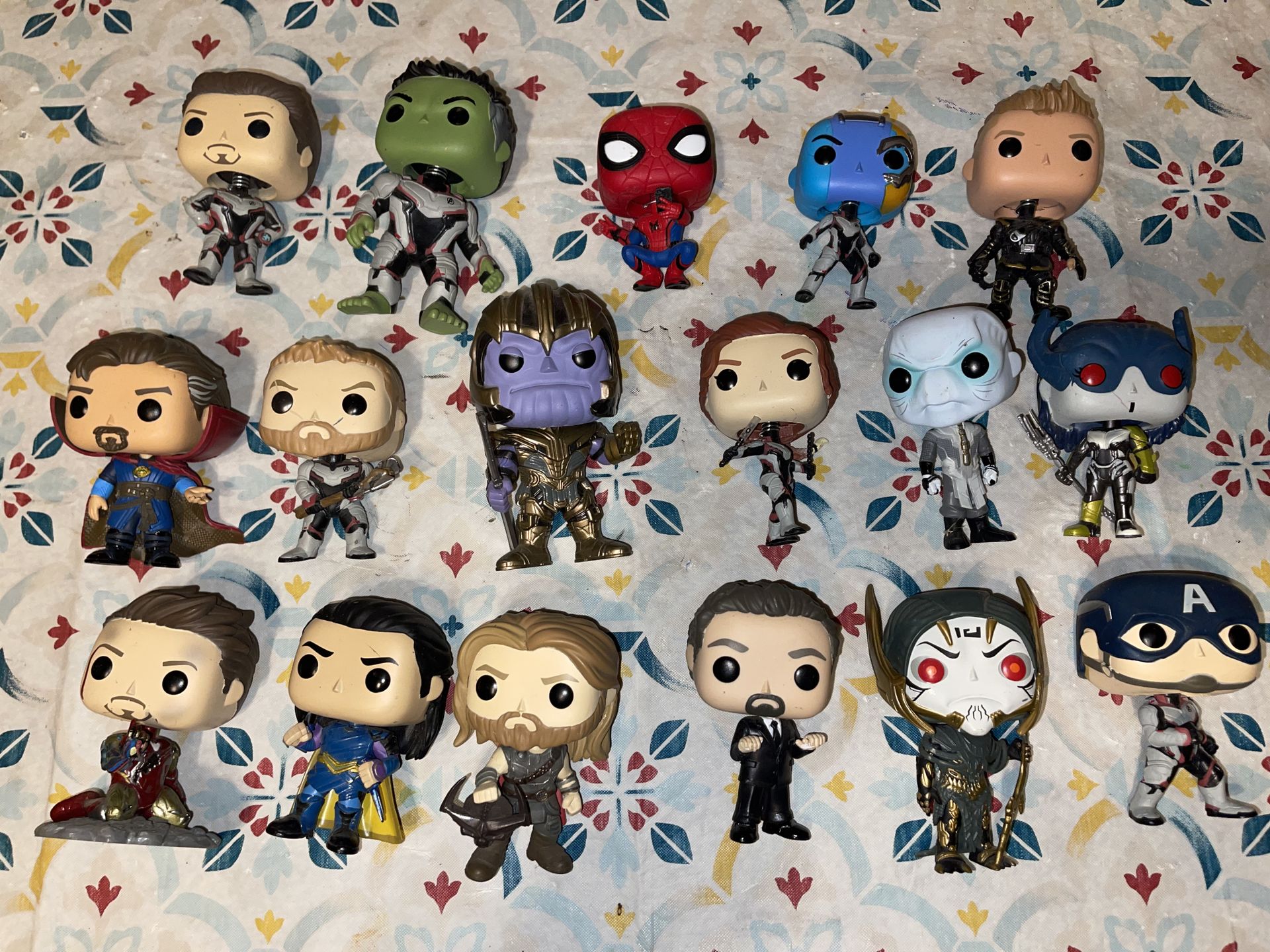 17 Marvel Funko Pops – Avengers Collection (OOB) 🦸♂️🔥 Selling a bundle of 17 Funko Pop figures from the Marvel Universe. Includes a great mix of Avengers characters—perfect for collectors or display! Characters included (as shown): • Iron Man • Thor • Thanos • Spider-Man • Doctor Strange • Captain America • Black Widow • Hulk • Nebula • Ebony Maw • more (see photo for full set) Details: • 17 figures total • Out of box (no packaging included) • Great for display or starter collection • From Avengers/Endgame era Condition: Good overall condition – some minor wear from display/storage Price: $50 OBO Pickup only Message me if interested or want more pictures!