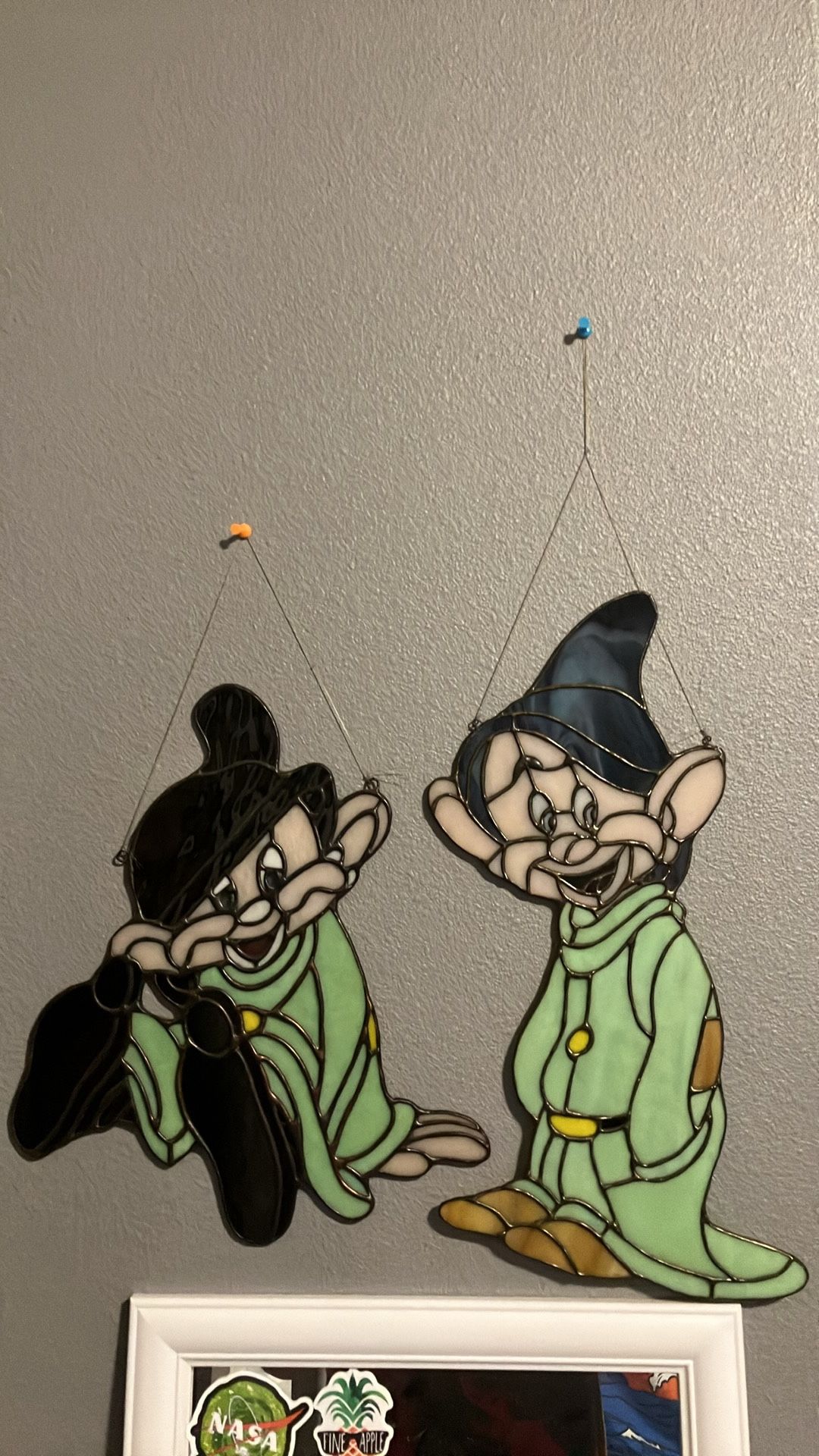 These are my two dopey stained glass sculptures they are professionally done by my grandfather I have all of his work and I need to slim down the collection