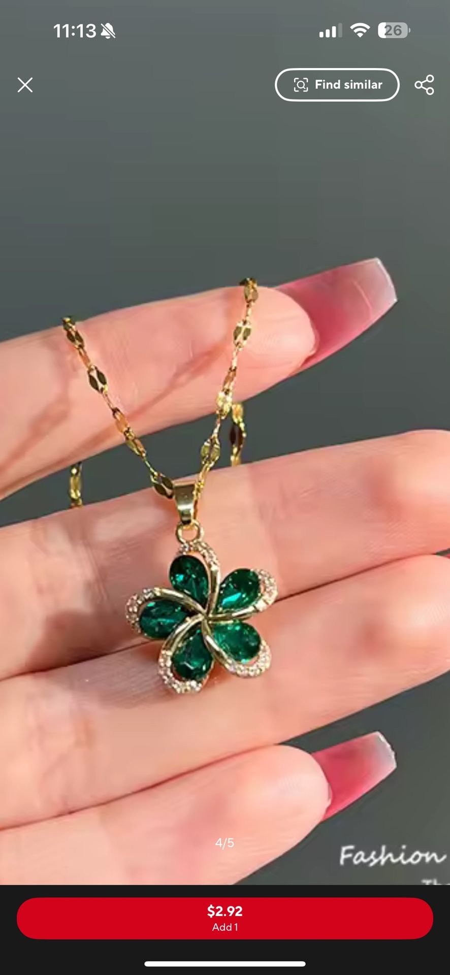 Stainless Steel Green Zircon Flowers Pendant Necklace