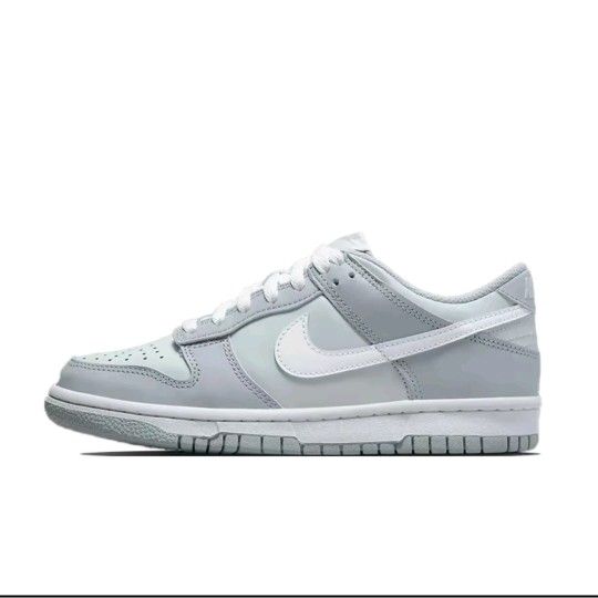 Women's Nike Dunk low two-toned Pure Platinum Wolf Gray Offers a sleek and versatile design. This sneaker features a smooth light gray leather base with darker gray overlays, creating a clean two-tone look that's easy to pair with any outfit. The iconic swoosh, laces, and outsole in matching gray tones complete the minimalist design, giving the sneaker a modern yet timeless appeal. #Nike #footwear