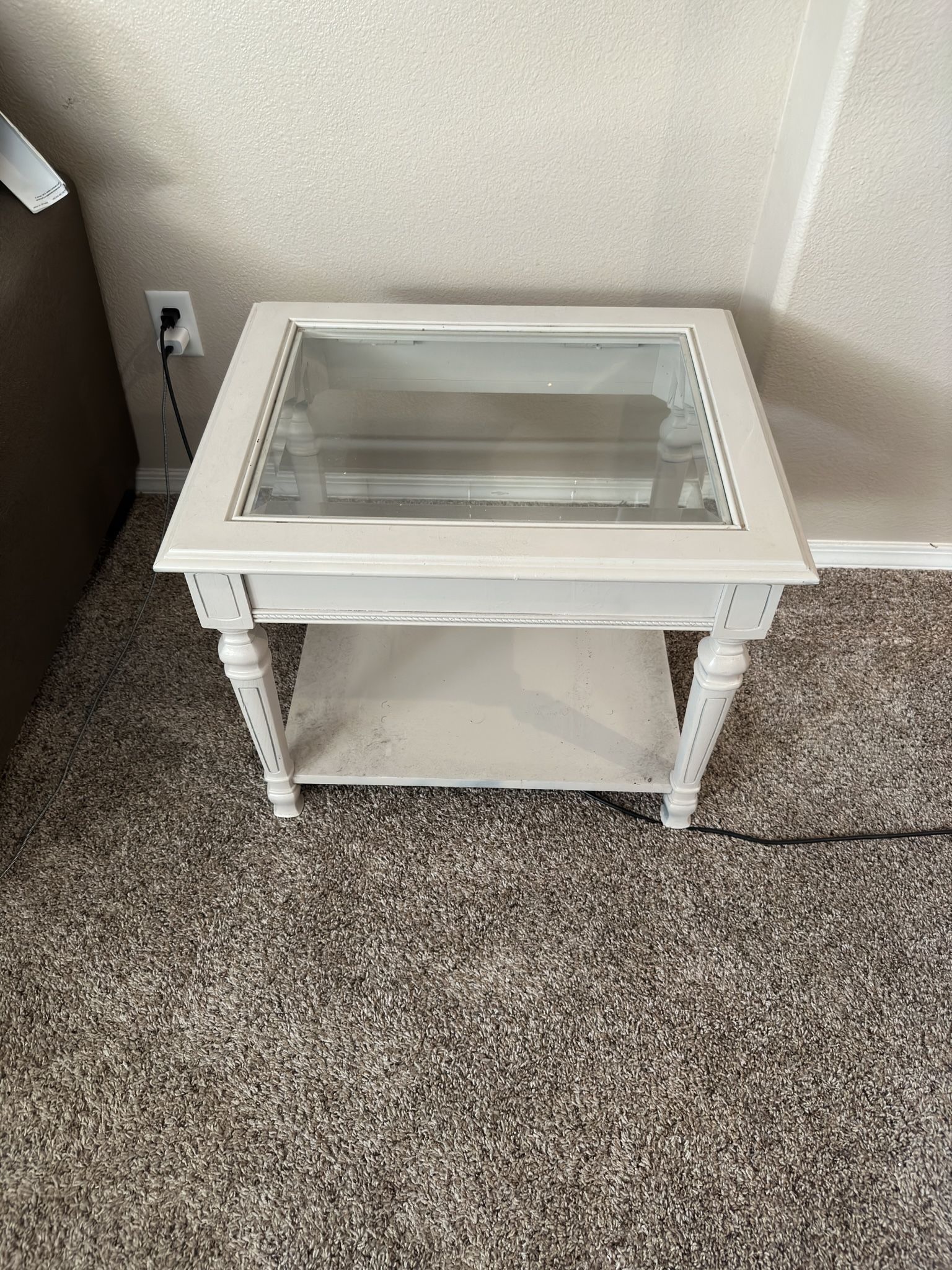 1 end table Restored Length 26” Depth 21” Height 21” Firm $20