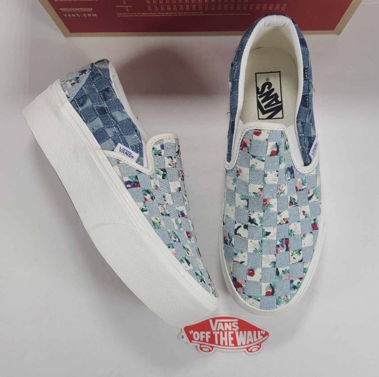 Vans Classic Slip-On Stackform Platform Woven Denim Floral Sneakers Women 8