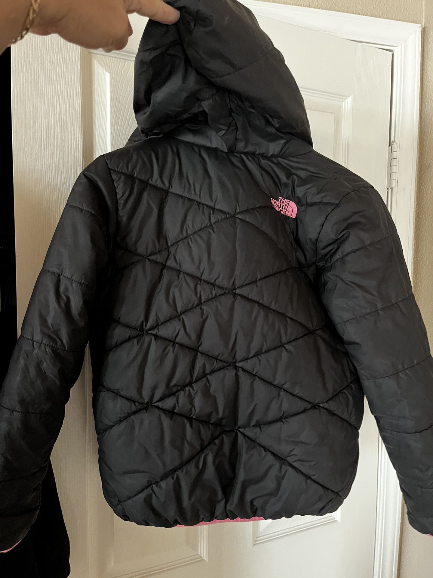 NORTH FACE REVERSIBLE JACKET Size M 10/12 for girls nice color looks like new I’m by 215/flamingo