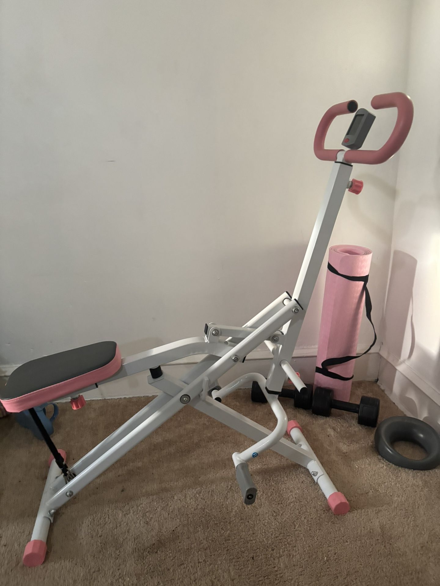 VEVOR - Squat Machine, Deep Squat Rowing Machine for Home, Easy Setup & Foldable Exercise Equipment, Glute Trainer Machine - White + pink