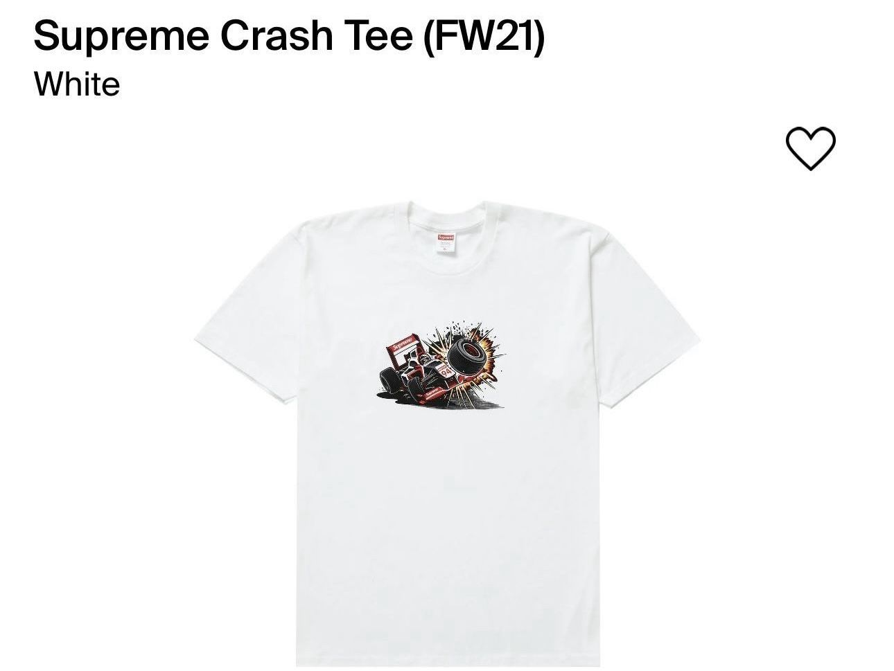 Supreme Crash Tee White Size XL Brand New