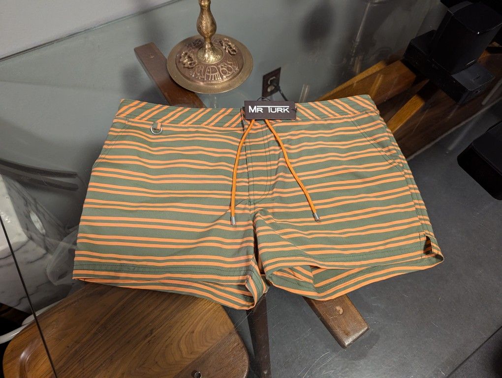 Never worn green & orange Mr. Turk swim shorts. Size: 36