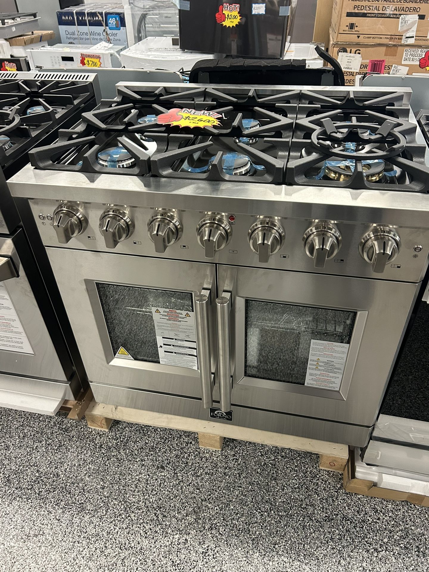 36’ Inches Wide FORNO SLIDE IN GAS STOVE!!! Air Fryer!! Convection Oven !!! FRENCH DOOR!!! STAINLESS STEEL BRAND NEW!!! With 2 Years Factory Warranty