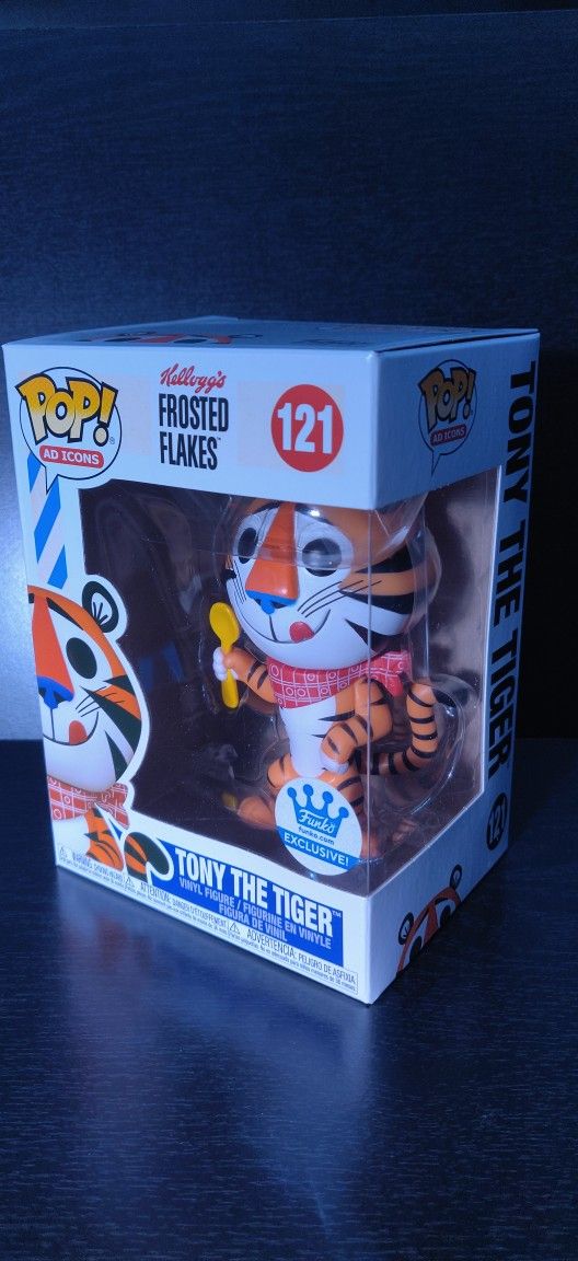 This listing is for a Funko shop exclusive Pop figure of Tony the Tiger. Figure is new, never been opened and in great condition. Asking $5 and I'm willing to do bundle discounts for anyone who buys multiple items from me. Thanks for looking!