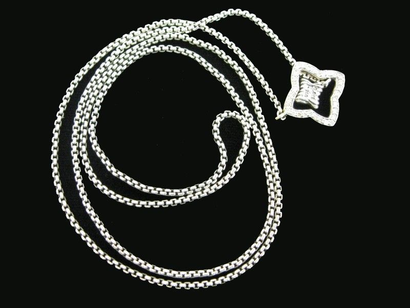 For Sale David Yurman Sterling Silver and 18K Gold with Diamonds Quatrefoil Lariat Necklace. Chain Size 24". In Excellent Condition. Local pickup only. No delivery. No shipping. No meeting halfway. Only Visa, MC, Debit, Zelle, Apple Pay (plus tax) or cash (tax included). No other forms of payment are accepted