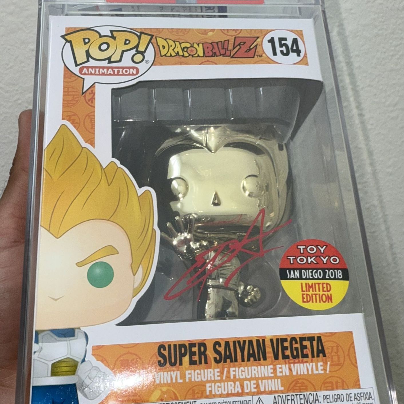 Funko Pop! Animation Dragon Ball Z Super Saiyan Vegeta Gold Chrome #154 PSA Certified Christopher Santa Autographed Mint condition in protective official PSA case, includes PSA autograph authenticity certification. Price: $250.00 CASH 💰// Pickup in Glendale, CA 91204.